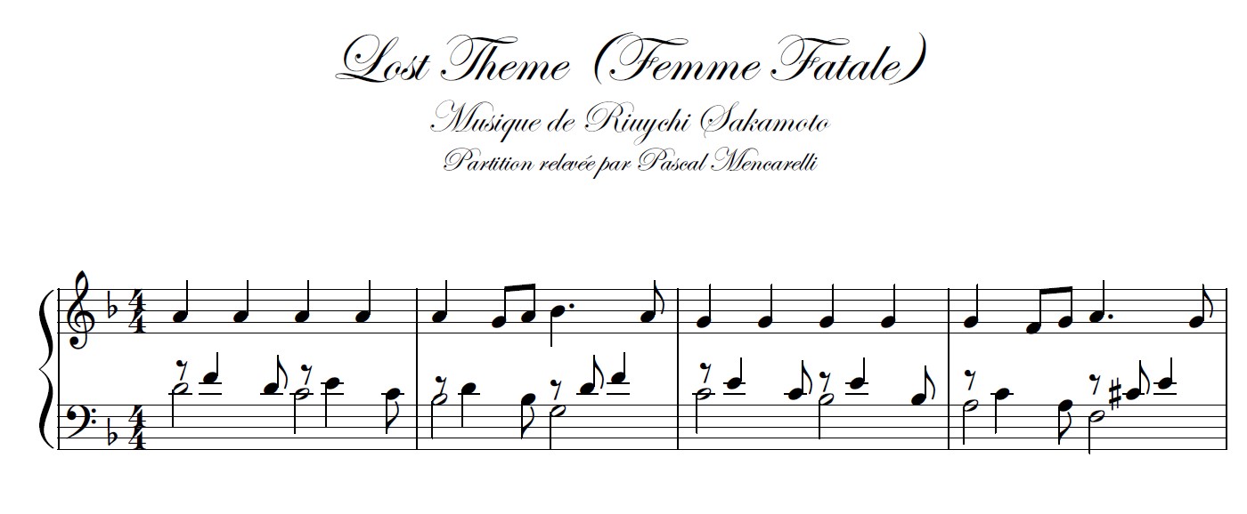 Ryuichi Sakamoto - Femme Fatale (Lost Theme) - Piano€6€6https://schema.org/InStockeurSpiani Transcriptions0 ratingsI want this!Piano sheet musicSize69.9 KBLength4 pages